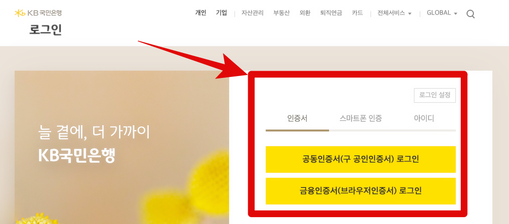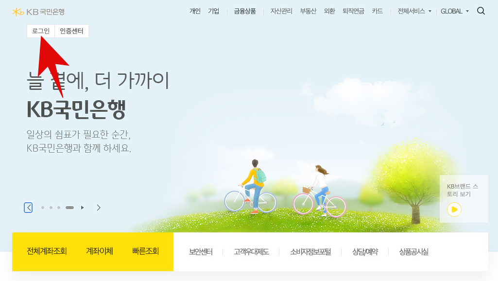인터넷 검색을 통해 국민은행 홈페이지에 접속합니다. 이후 간단하게 로그인을 진행하도록 하겠습니다.